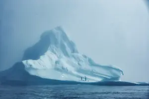 Die Abel Tasman liegt neben einem Eisberg im Hafen von Nuuk. Zunächst fahren wir zum Eisberg, um ihn näher zu untersuchen. Cléo fährt um ihn herum, während ihr Vater im Bug (dem vorderen Teil des Boots) steht und filmt. Es ist das erste Mal in meinem Leben, dass ich einen Eisberg aus der Nähe betrachten kann. Er strahlt Kälte aus, die aber nicht unangenehm ist.
