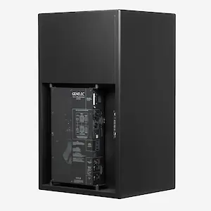Neu sind die redesignten, frontal integrierten Bassreflexöffnungen, deren Positionierung allein schon durch die herausnehmbaren 19″-Endstufen auf der Rückseite für einen möglichen Wandeinbau nicht zufällig gewählt wurde. Neben der akustisch sinnvollen, aber natürlich auch etwas oldschool wirkenden Integration in entsprechend vorbereitete Wandelemente, lassen sich die neuen Modelle auch freistehend nutzen. Ein feines, aber praktisches Detail sind zudem die Maße des Lautsprechers, denn diese stimmen 1:1 mit unseren älteren Modellen, wie etwa dem 1038 oder 1238, exakt überein. Für den Fall, dass ein Kunde seine alten wandverbauten Lautsprecher durch die 8380A ersetzen möchte, erhält er ein auf den Millimeter passendes Replacement. Bis heute gibt es Kunden, die das Upgrade von den rein analogen 1038 auf die DSP-Varianten 1238 aus unterschiedlichsten Gründen nicht mitgegangen sind und für die eine Umrüstung zum jetzigen Zeitpunkt umso interessanter sein dürfte.