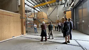 Ein besonderer Schwerpunkt lag auf der Bauakustik. Stefan Schoenwald, Leiter dieses Fachbereichs, erläuterte aktuelle Forschungsansätze und Messmethoden zur Verbesserung der Schalldämmung und Reduktion der Flankenübertragung in Gebäuden. Besonders eindrucksvoll war eine große Halle, in der Zimmer aus unterschiedlichen Materialien nachgebildet werden. Ein aktuelles Projekt untersucht sogenannte akustische schwarze Löcher, die bei reduziertem Materialeinsatz eine vergleichbare Trittschalldämmung wie konventionelle Deckenlösungen ermöglichen. Überprüft wird die Wirksamkeit u. a. mit einer „Hammermaschine“ und einem genormten „Trittschall-Ball“, der den gefürchteten Barfuß-Fersenläufer simulieren soll und unglaubliche 3000 Schweizer Franken kostet.